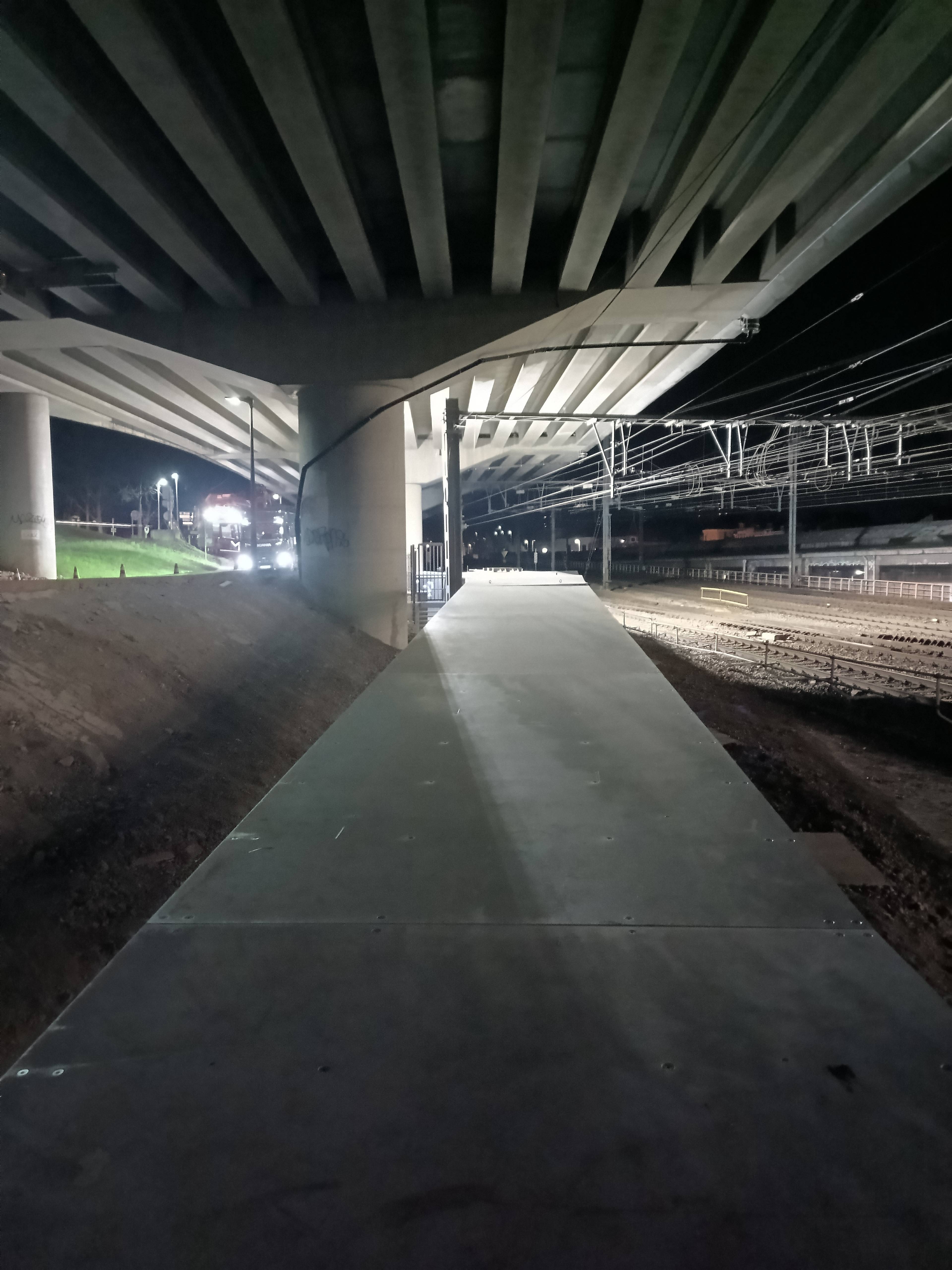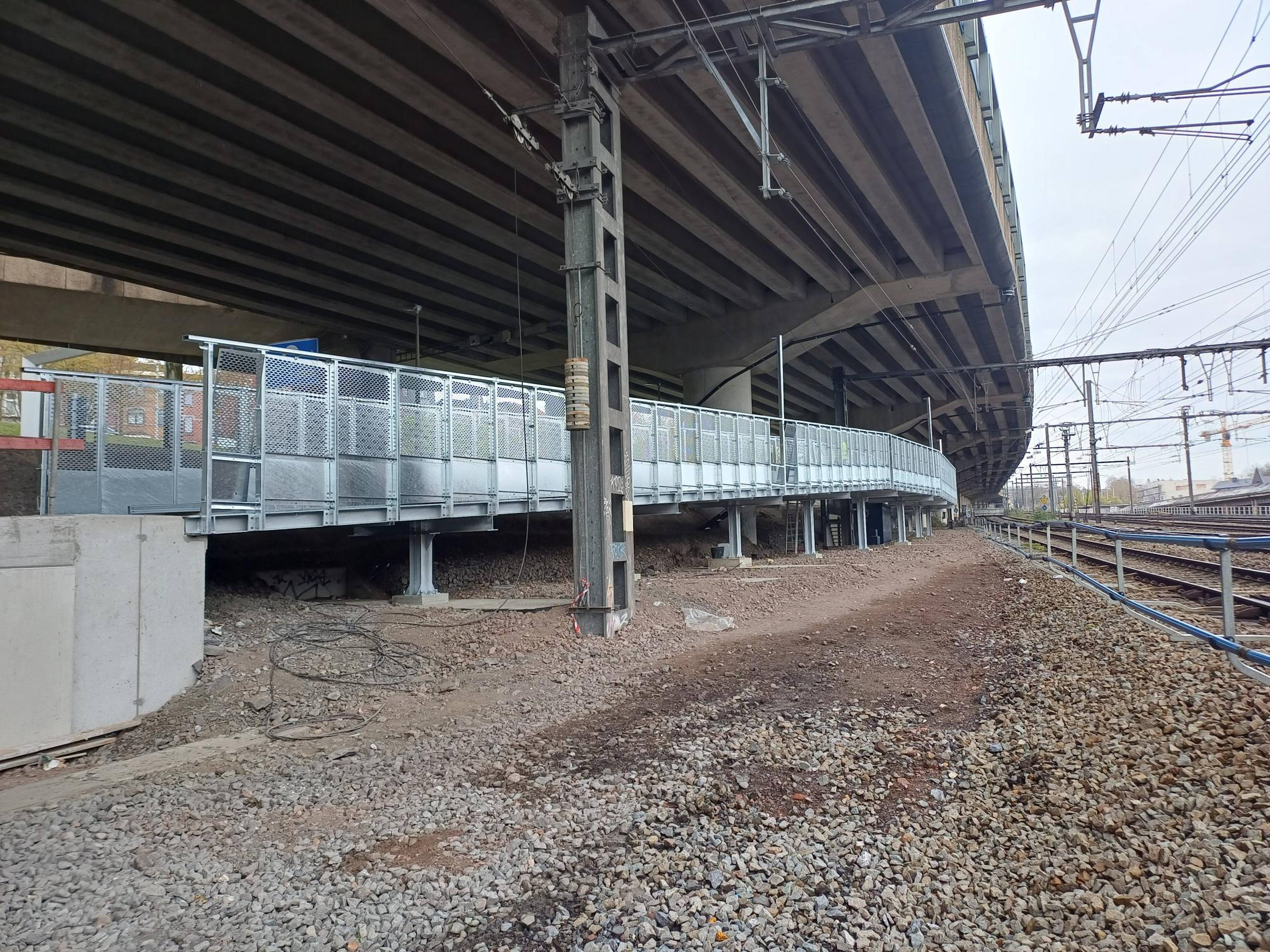L’installation de la passerelle n’a pu être réalisée que lors des coupures nocturnes du tunnel de Cointe.