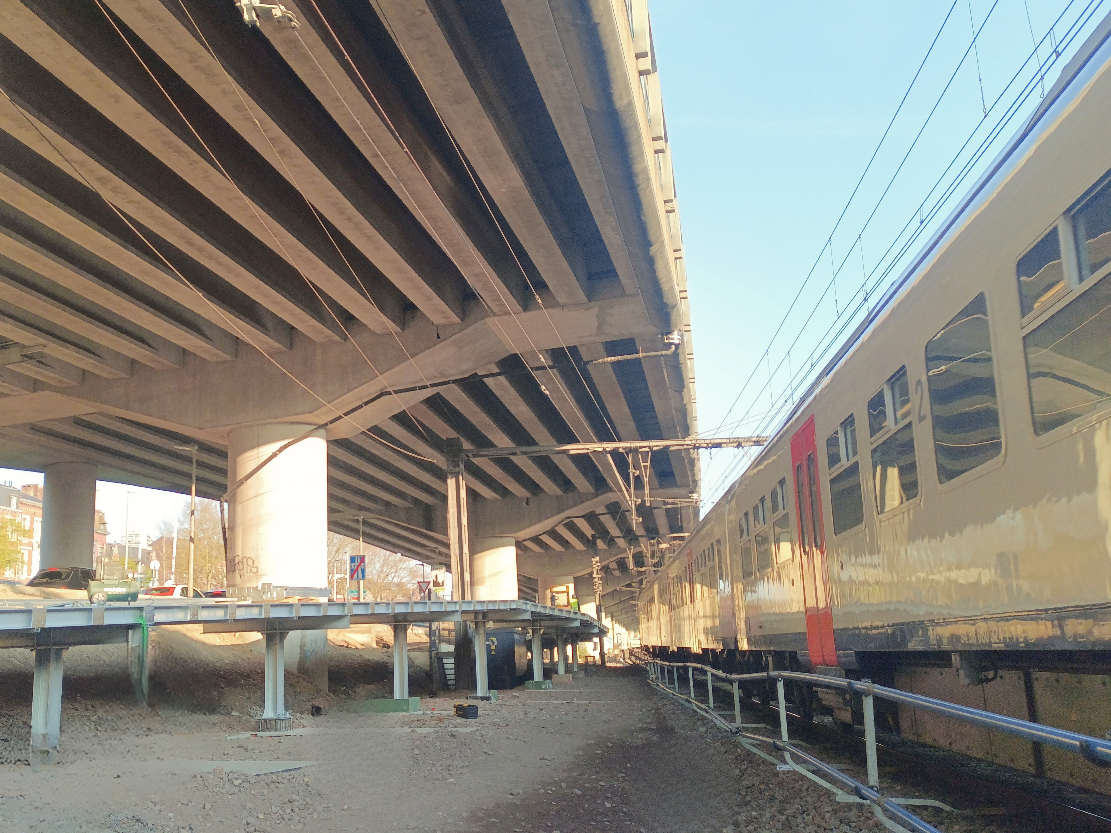 Implanté dans un espace très contraint, entre le faisceau de voies à l’entrée de la gare et la bretelle autoroutière à la sortie du tunnel de Cointe, le projet a nécessité une organisation millimétrée.